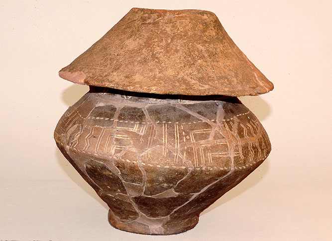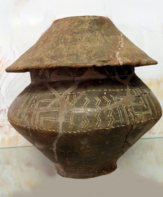 Urna cinerària decorada i tapadora. Necròpolis d'incineració de Can Bech de Baix. 1000-700 aC. MAC - Girona - (Ampliar)