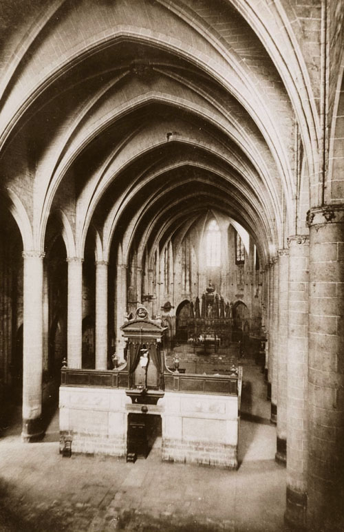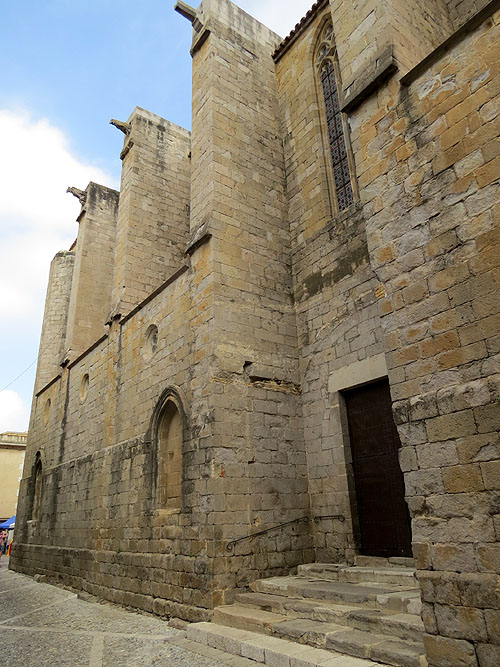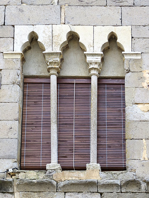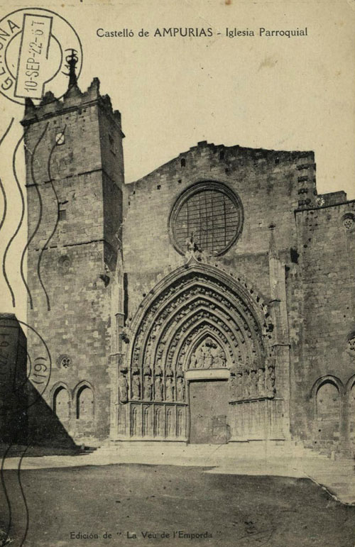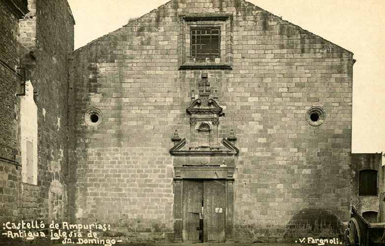 Durant la invasió francesa del 1285 el comte s'identificà plenament amb la causa del rei Pere el Gran i lluitaren plegats. Ponç Hug IV també lluità amb el rei Jaume II el Just (1267-1327) en la guerra de Sicília, però s'enemistà amb els bisbes de Girona que l'acusaven d'haver intentat enderrocar el seu castell de la Bisbal. ![]() La Casa Gran. Casa-palau de cavallers i burgesos. Segona meitat del segle XIV - (Ampliar) El 1168 els Templers s'establiren a Castelló; és la primera casa monàstica de la que es té notícia. Aviat, però, van ser substituïts per l'ordre de l'Hospital, i després hi arribaren els mercedaris que fundaren elconvent de Sant Bartomeu, 1238, les monges clarisses, que bastiren el convent de Santa Clara, 1260, els franciscans, el convent de Sant Francesc, 1264 i els agustins, el convent de Santa Magdalena, també al segle XIII, tots extramur, fins a l'any 1655, en què varen ser destruïts pels francesos i es varen reconstruir a l'interior. El de Sant Domènec, fundat el 1317, es va establir vora el Palau dels comtes. També hi havia el monestir de Sant Marc. ![]() Església del convent de Sant Domènec. 1911-1936. Valentí Fargnoli i Annetta. CRDI - Ajuntament de Girona - (Ampliar) La segona nissaga comtal El comte Ponç Hug V va morir sense fills i segons el seu testament heretà el comtat Hug de Cardona, Hug VI d'Empúries (1322-1325), qui tingué el comtat poc més de dos anys. El 1325 el va permutar amb l'Infant Pere, quart fill de Jaume II, per la baronia de Pego i les viles de Xaló i la Vall de Laguar al Regne de València. Així el comtat d'Empúries quedà vinculat a la família reial. Jaume II havia aconseguit acabar amb l'autonomia del comtat d'Empúries. Amb Pere I d'Empúries (Pere d'Aragó i d'Anjou, fill de Jaume II el Just), s'inicià la segona dinastia comtal emporitana, vinculada a la família reial barcelonina. Aquest comte va impulsar les obres de l'església, embellí el palau comtal i va fer construir un pont sobre La Muga, l'actual Pont Vell. ![]() Convent de Santa Clara. Ca. 1683 - (Ampliar)