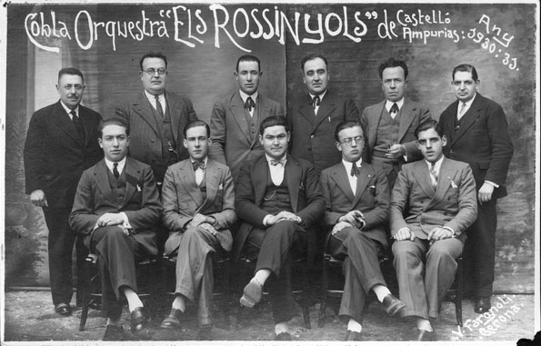Durant l'edat mitjana Castelló vivia principalment del comerç, l'artesania i l'administració derivada dels comtes; l'agricultura estava poc desenvolupada. Durant els segles XVIII, XIX i part del XX l'agricultura i la ramaderia varen ser les activitats econòmiques més importants (2). ![]() Orquestra Els Rossinyols de Castelló d'Empúries. 1930-1931. Valentí Fargnoli i Annetta. INSPAI - Diputació de Girona - (Ampliar) El segle XIX.