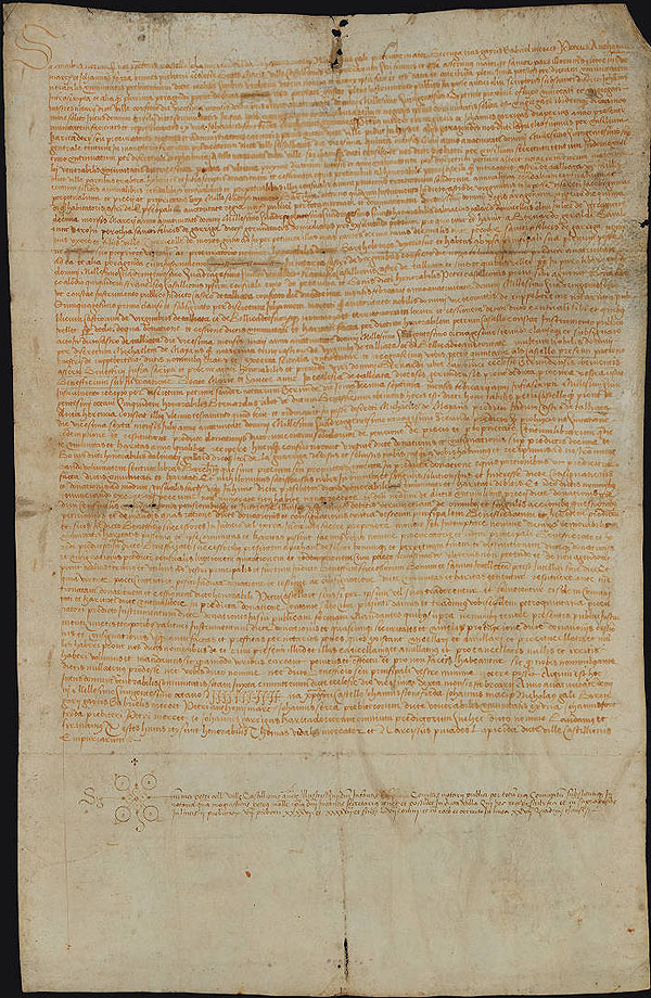 L'any 945 el comte Gausfred I d'Empúries va fer donació al monestir de Sant Pere de Rodes de tot l'estany de Castelló amb els seus drets de pesca. De l'any 1007 és la primera notícia documentada sobre l'existència de l’església de Santa Maria de Castelló, una compra feta pel bisbe de Girona Odó als esposos Tedmar i Truitel·la d'un alou del terme de Castelló que comprenia diversos pujols, dues llacunes i dos estanys anomenats "Ded" i "Bona conca". La propietat limitava, en diferents punts, amb terres de Sancta Maria de Castilione. ![]() 23 de novembre de 1339. Els procuradors de la caritat de la vila de Castelló d'Empúries reconeixen a Berenguer Castelló haver rebut les 10 lliures melgoreses destinades anualment al convent de framenors de Castelló. Biblioteca de Catalunya - (Ampliar) La primera nissaga comtal