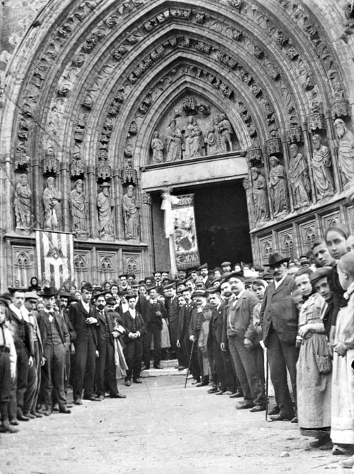 ![]() ![]() Escut de Castelló d'Empúries. ![]() Situació del municipi de Castelló d'Empúries dins la comarca de l'Alt Empordà L'Orfeó Català a la portalada de la catedral de Castelló d'Empúries. 1899. Centre de Documentació de l'Orfeó Català - (Ampliar) El comte Ponç I d'Empúries (990-1078) i el comte Guislabert II de Rosselló. Liber Feudorum Ceritaniae. Viquipèdia - (Ampliar) Diner de Ponç Hug IV (1230-1269). Viquipèdia - (Ampliar) Escut d'armes de Joan I d'Empúries (1338-1398). Viquipèdia 30 de juliol de 1343. Berenguer Domènech ven al Convent dels Frares Predicadors de Castelló d'Empúries un cens de 4 sous malgoresos. Biblioteca de Catalunya. - (Ampliar) Contraforts de l'església de Castelló d'Empúries - (Ampliar) Interior de l'església de Castelló d'Empúries. 1911-1936. Valentí Fargnoli i Annetta. CRDI - Ajuntament de Girona. - (Ampliar) Una família jueva en el sopar de Pasqua. Hagadà Rotschild, segle XIV. Facsímil del Museu d’Història dels Jueus de Girona. - (Ampliar) Rabí David de Cotlliure, segle XIV. Làpida proceedent del cementiri jueu de Castelló d'Empúries - (Ampliar) Carrer dels Jueus. Joan Segur. INSPAI - Diputació de Girona - (Ampliar) Dones jueves amb la rodella al cap. Detall "Retaule dels sants Joans". 1435-1445. Museu Nacional d'Art de catalunya - (Ampliar) Portal de la Gallarda. Segle XIII-XIV - (Ampliar) Guerra dels Segadors. Capità del Batalló Català (1647-1650). Dibuix de Francesc Riart - (Ampliar) Casa Sanllehí. Segle XVIII. SObre restes tardo medievals i primera sinagoga - (Ampliar) Plaça de mossèn Cinto Verdaguer - (Ampliar) Torre dels Carlins, construïda a la segona meitat del segle XIX, pel 'Regimiento de Toledo'. Viquipèdia. - (Ampliar) Tercera Guerra Carlina. Comandant de batalló. Dibuix de Francesc Riart. - (Ampliar) Francesc Savalls i Massot. 1872. Viquipèdia. - (Ampliar) Creu de terme gòtica del segle XV. - (Ampliar) Rectoria de Castelló d'Empúries, abans palau de l'abat. 1896. Juli Vintró i Casallachs. Arxiu Fotogràfic Centre Excursionista de Catalunya. - (Ampliar) Detall de la portalada de basílica de Santa Maria - (Ampliar) Catedral de Castelló d'Empúries. 1922. Autor desconegut. CRDI - Ajuntament de Girona - (Ampliar) Detall de la portalada de la Catedral de Castelló d'Empúries - (Ampliar) Interior de la Catedral de Castelló d'Empúries - (Ampliar) Detall de l'orgue de la basílica de Santa Maria - (Ampliar) Sala de contractació, coneguda també com Llotja o Duana - (Ampliar) Detall del timpà de la basílica de Santa Maria - (Ampliar) Cúria-presó de Castelló - (Ampliar) Detall d'una finestra. - (Ampliar) Portal de la Gallarda. Segle XIII-XIV - (Ampliar) Interior de la basílica de Santa Maria - (Ampliar) |