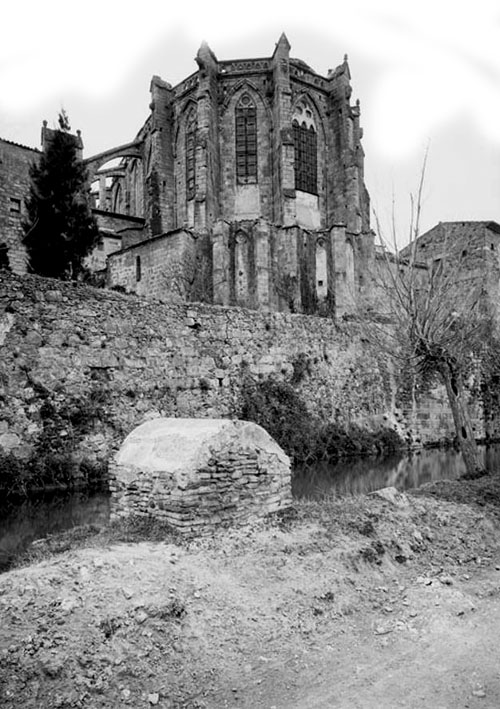 Entre els anys 1254-1325, es produeixen els moviments emigratoris de jueus francesos expulsats de França, molts dels quals s’estableixen al call de Castelló d’Empúries. EL 1306 l’Aljama adquireix per compra un nou terreny al pla de Rotacàs per ampliar el seu cementiri o fossar d’extramurs. El 1315 el bisbe de Girona Guillem de Vilamarí commina als jueus de Castelló a vestir la capa rodona i a portar senyal distintiu, imposició refusada pel comte Ponç Vi, Malgaulí. ![]() Cementiri dels jueus conversos. A partir de la primera conversió massiva el 1415, els jueus conversos varen ser enterrats a la sagrera, contigua al mur septentrional de l'absis de la basílica. - (Ampliar) El 1417 en plena davallada, es varen batejar un centenar de jueus (1). El 17 d'abril de 1420 l'Aljama de Castelló es va posar a la venda; quan el 1492 es va signar el decret d'expulsió del jueus, a Castelló en devien quedar ben pocs. En morir, els jueus convertits al cristianisme eren enterrats en una àrea delimitada del cementiri cristià parroquial de l’església de Santa Maria prop de la muralla que dóna al Rec del Molí, anomenat al llarg dels segles “cementiri dels jueus conversos”. En l'actualitat, Castelló és el tercer lloc de Catalunya on més esteles funeràries, Matsewots, s'han trobat. Encara avui es pot veure l'estructura de la Sinagoga Nova Bet-Kenneshet. ![]() Vista parcial de Castelló amb la Muga. 1911-1936. Valentí Fargnoli i Annetta. CRDI - Ajuntament de Girona - (Ampliar) Els segles XVII i XVIII.