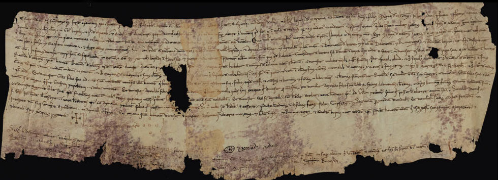 Ponç I d'Empúries jura fidelitat al comte Gilabert II del Rosselló. Segle XII. Liber Feudorum Ceritaniae. Viquipèdia. - (Ampliar)