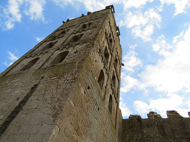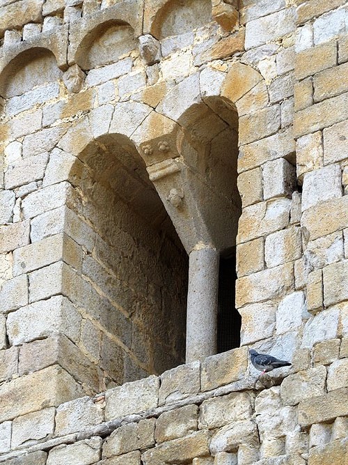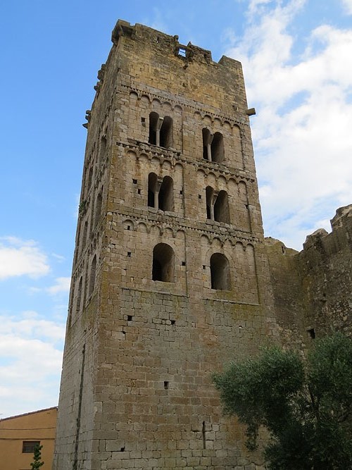 Durant el segle XII va ser escollit per la família d’Oltrera com a mausoleu. Entre la seva consagració i l’agregació a Sant Pere de Galligants el 1592, el monestir de Sant Miquel va rebre diverses donacions dels comtes d’Empúries, territori al qual pertanyia, i també dels comtes de Barcelona. ![]() Detall del campanar de l'església de Sant Miquel de Fluvià - (Ampliar)