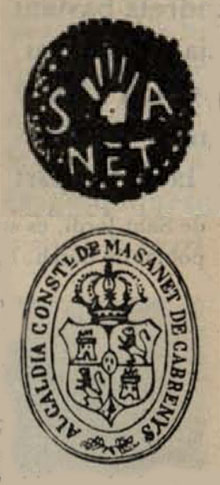 Segells municipals de Maçanet de Cabrenys. Publicats a "Geografia General de Catalunya"m Joaquim Botet i Sisó (1908-1918).