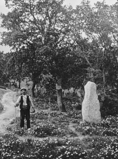 El menhir de la Pedra Dreta. Ca. 1902. Cèsar August Torras. Arxiu Fotogràfic Centre Excursionista de Catalunya - (Ampliar)