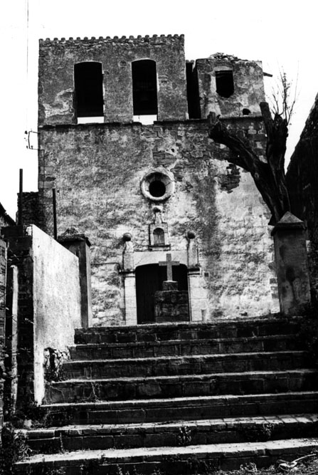 Façana lateral i antic portal tapiat de l'església de Sant Joan de Matajudaica. 1995. Arxiu Fotogràfic Centre Excursionista de Catalunya - (Ampliar)