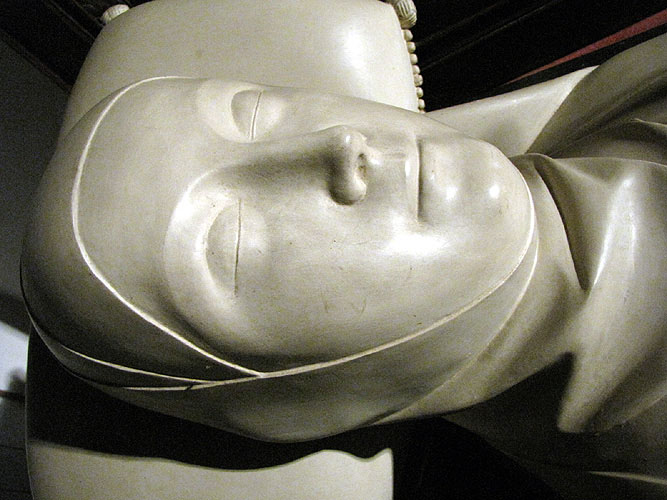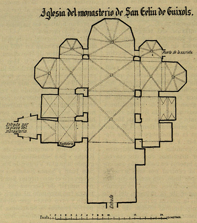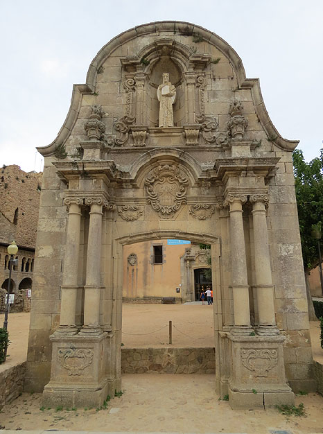 L'any 968 el rei franc Lotari lliurà a l'abat Sunyer el diploma que ratifica el béns del monestir guixolenc: els llocs de Guíxols, Fenals, la Vall del Ridaura, Biert-Romanyà, Bell-lloc i part de Calonge (3). El 985 el monestir va patir també els efectes de l'atac d'Almansor a Barcelona. Els conflictes interns entre els monjos i la població van portar a una segona ratificació dels béns del monestir per part de la comtessa Ermessenda de Carcassona. ![]() La comtessa Ermessenda de Carcassona. Rèplica del sepulcre situat a la Catedral de Girona. - (Ampliar)