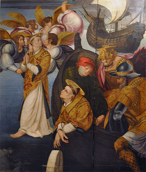 AL segle VII es formà la llegenda de Sant Feliu l'Africà, segons la qual el màrtir cristià va ser llançat al mar des del cim de la punta dels Guíxols (2). D'aquí va néixer una popular tradició del jovent ganxó de llançar-se des d'allà al crit de "Valga'ns Sant Feliu!" i creuar nedant l'esquerda natural de sota el penya-segat des de la platja de Calassanç a la platja de ponent. També són molt coneguts els goigs del gloriós màrtir Sant Feliu l'Africà: "Des dels Guíxols sou llançat / al mar, amb una gran mola. / Un àngel des del cel vola / i a la platja us ha portat / que en honra vostra es diu / Calassanç des d'aquell dia." ![]() Recreació de la villa romana anterior a la construcció del primer monestir. Dibuix de Jordi Sagrera. Museu de Sant Feliu de Guíxols - (Ampliar) Sant Feliu medieval.