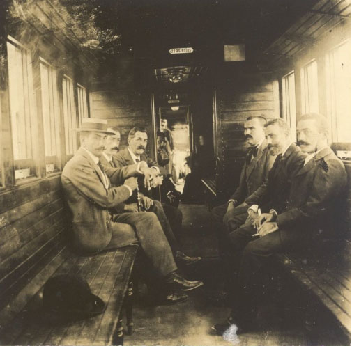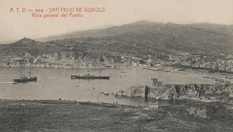 Varen arribar a la vila més d’un centenar de persones, entre treballadors i famílies. Es va crear un parc tancat amb el perímetre delimitat per estaques i es van ocupar com a tallers part dels magatzems i botigues del raval de Tueda i voramar. Entre 1716 i 1719 es van construir a Sant Feliu tres grans navilis per a l’Armada espanyola: el "Sant Felip el Real", de març de 1716 a maig de 1717 maig, el "San Bartolomé", d'octubre de 1717 octubre a l'agost de 1718, i "El Catalan" o "N.S. de Montserrat", de setembre de 1718 a juny de 1719. ![]() Ferrocarril de Sant Feliu de Guíxols a Girona. 1906. Família Cuyàs. Institut Cartogràfic i Geològic de Catalunya - (Ampliar) Sant Feliu al segles XIX i XX.