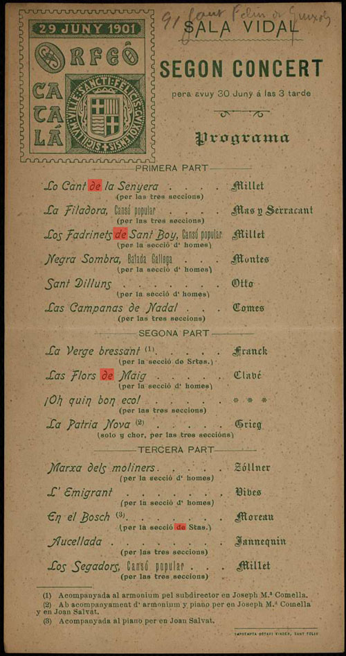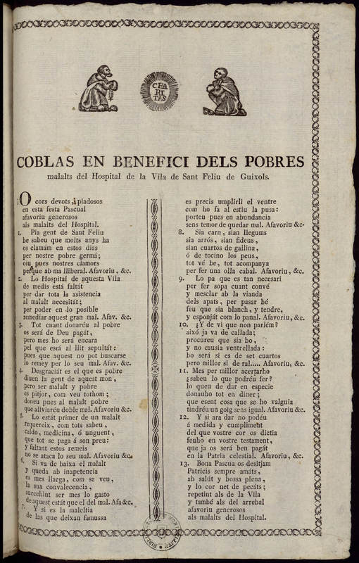 ![]() Tassa de ceràmica reduïda grollera, segle IV-I aC. Poblat ibèric dels Guíxols - (Ampliar) ![]() Bicònic de ceràmica grisa. Segle II aC. Museu de Sant Feliu de Guíxols - (Ampliar) ![]() Guerrer iber d'infanteria lleugera amb 'caetra'. Segles IV-III aC. Dibuix de Francesc Riart - (Ampliar) ![]() Bol de terra sigillata aretina 27aC-14dC. Poblat ibèric dels Guíxols. Museu de Sant Feliu de Guíxols - (Ampliar) ![]() Bust del rei franc Lotari (941-986) qui lliurà l'any 968 a l'abat Sunyer el diploma que ratificava el béns del monestir de Sant Feliu. Viquipèdia. ![]() Monjo benedictí. 1170-1200. Viquipèdia - (Ampliar) ![]() 10/09/1418. Isabel Floret, de Sant Feliu de Guíxols, i Francesc Ros, de Torroella de Montrgrí, celebren els seus capítols matrimonials. Biblioteca de catalunya - (Ampliar) ![]() Plànol del monestir de Sant Feliu de Guíxols. Publicat a "Las Casas de religiosos en Cataluñ"a" de G. Barraquer, 1906 - (Ampliar) ![]() Felip V d'Espanya (1683-1746). Viquipèdia - (Ampliar) ![]() Edicte del subdelegat de Montes de Sant Feliu de Guíxols que dóna publicitat a l'ordre reial sobre l'incompliment de la legislació sobre l'explotació dels boscos per a la Marina. 1779. Arxiu Històric de Girona - (Ampliar) ![]() Vista de Sant Feliu de Guíxols. Gravat del segle XVII - (Ampliar) ![]() El bandoler Perot Rocaguinarda (1582-1635). Viquipèdia - (Ampliar) ![]() Antic hospital de Sant Feliu de Guíxols - (Ampliar) ![]() Programa del concert celebrat el 30 de juny de 1901 a la Sala Vidal de Sant Feliu de Guíxols. Centre de documentació de l'Orfeó Català - (Ampliar) ![]() Una dona al peu de l'arc de Sant Benet davant del monestir. 1895-1905. Autor desconegut. Arxiu Fotogràfic Centre Excursionista de Catalunya - (Ampliar) ![]() Coblas en benefici dels pobres malalts del hospital de la vila de Sant Feliu de Guíxols. Segle XIX. Universitat de Montpeller - (Ampliar) ![]() Segells municipals de Sant Feliu de Guíxols. Publicats a "Geografia General de Catalunya" de Botet i Sisó, 1908-1918 - (Ampliar) ![]() Viatge inaugural del tren, 1892. Col·lecció Espuña-Ibáñez. Autor desconegut. Arxiu Municipal de Sant Feliu de Guíxols - (Ampliar) ![]() Rafael Patxot i Jubert (1872-1964). Fons Univers Patxot - (Ampliar) ![]() Portada de la 'Revista de S'agaró'. 1935. Arxiu Municipal de Sant Feliu de Guíxols - (Ampliar) ![]() El Salvament, inaugurat el 1890 - (Ampliar) ![]() Platja de Sant Pol amb el xalet Montseny. 1938. Feliu Romaní. INSPAI - Diputació de Girona - (Ampliar) ![]() Ermita de Sant Elm - (Ampliar) ![]() Josep Irla i Bosch (1876-1958). Generalitat de Catalunya - (Ampliar) ![]() Cartell electoral de l'Agrupació d'Electors Independents de Sant Feliu. 1979. Universitat Autònoma de Barcelona - (Ampliar) ![]() Agustí Calvet i Pascual, 'Gaziel' (1887-1964). Biblioteca de Catalunya - (Ampliar) ![]() Mirador de Sant Elm - (Ampliar) ![]() Nou Casino la Constància - (Ampliar) ![]() Escut a l'antic hospital de Sant Feliu - (Ampliar) |