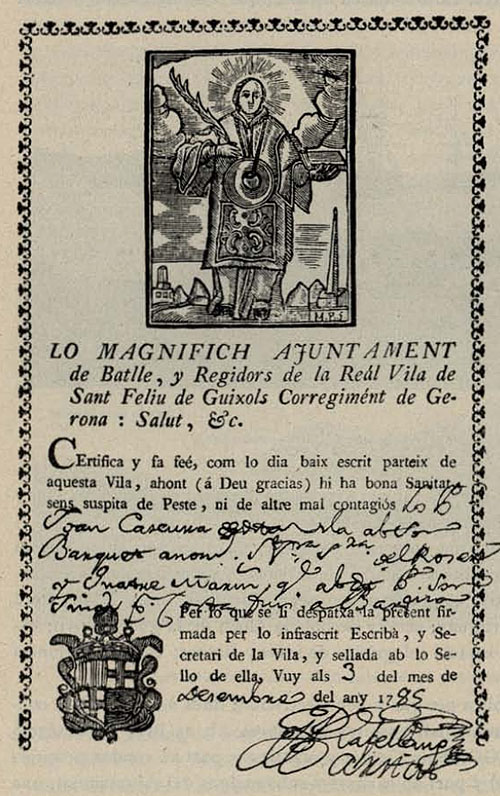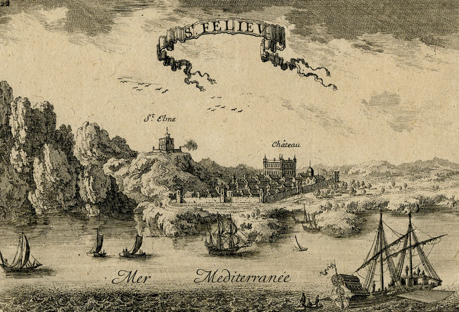 L’any 1443 el rei Alfons IV el Magnànim atorgà a Sant Feliu de Guíxols el privilegi d’establir a la vila un Consolat de Mar, encapçalat per un cònsol i un jutge d’apel·lacions, càrrecs amb una durada anual que es renovaven per elecció entre tots els membres del consistori municipal. Al llarg del temps disposaren de consolat de mar la ciutat de Barcelona i, a banda de Sant Feliu, altres localitats de la corona catalanoaragonesa com Tortosa, Girona o Perpinyà. ![]() Vista de Sant Feliu de Guíxols. 1668. Beaulieu. Universitat Autònoma de Barcelona - (Ampliar) Del segle XVI al segle XVIII.