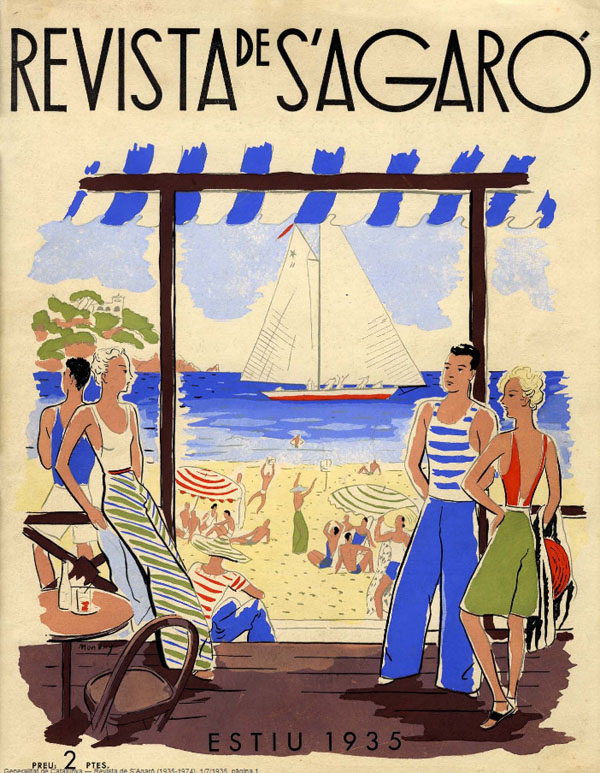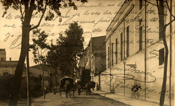 A partir del segle XIII la població guixolenca començà a prendre consciència ciutadana davant el poder feudal que retenia el Monestir, i així aparegué el mot universitat per a designar l'associació de població. L'any 1258 l'abat Gerald concedí a la Universitat el privilegi de construir unes drassanes, que serien molt productives, amb el temps, per a la població. ![]() Vista de la carretera de Girona. 1908. Jesús Mauri Radó. INSPAI - Diputació de Girona - (Ampliar)