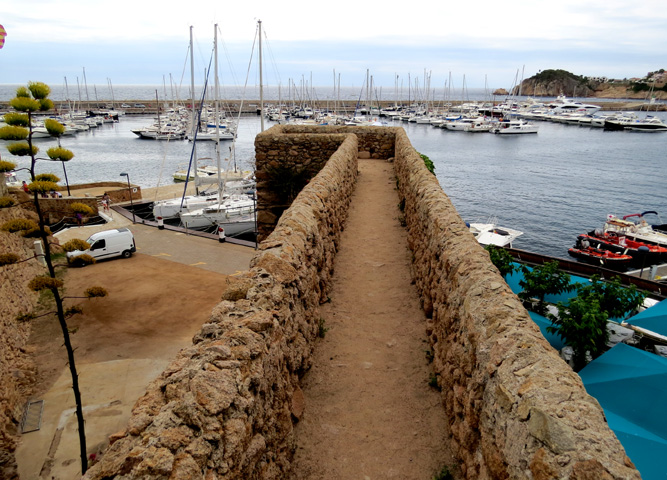 Durant els segles XVI i XVII la recuperació de la vila va ser lenta i costosa i la població va patir greus problemes de fam, sequera i pesta. La vila va seguir creixent, per força fora muralles, cap a la riera de Tueda, a llevant. Es va construir un nou hospital a la banda de tramuntana, i una nova capella a la zona de Sant Amanç. ![]() Vista general de la badia. 1901-1908. Autor desconegut. Biblioteca de Catalunya - (Ampliar)