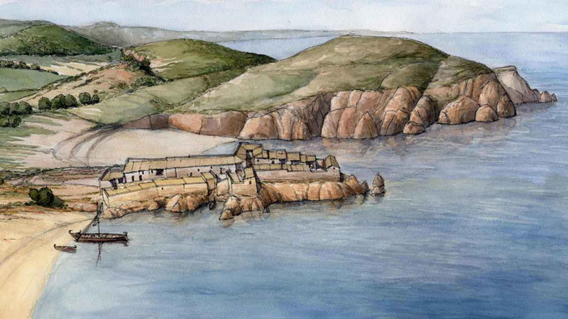Les formes antigues del topònim de la població, com Gissalis (961), Iecsalis (968), o Guixolensis (1016), que finalment esdevindria Guíxols, semblen derivar de l'iber "hel·lenitzat" kuiksalos, en opinió de Joan Coromines, si bé també accepta la possibilitat que el mot derivi directament del grec (1). ![]() El moll medieval de Sant Feliu de Guíxols - (Ampliar) La història de Sant Feliu de Guíxols es remunta al segle V aC, amb la presència d'un poblat iber que es va instal·lar a la punta dels Guíxols, també anomenat Fortim o Salvament, un promontori que divideix a la badia en dues parts. Fa 2500 anys el mar entrava molt més endins, per tant la situació estratègica del poblat esdevenia òptima per a la defensa i la supervivència. ![]() Recreació del poblat ibèric dels Guíxols. Segle III aC. Il·lustració de Jordi Sagrera. Museu de Sant Feliu de Guíxols - (Ampliar) Amb l'arribada de la romanització, cap a final del segle I aC, la població progressivament va anar abandonant la muntanya i instal·lant-se al pla, prop de la riera de les Comes, actualment encara descoberta en alguns trams, un lloc fèrtil i estable que permetia possibles expansions, i que continuà habitat fins al segle VII, l'època de les invasions. De fet, el lloc de Guíxols mai va estar deshabitat del tot perquè la situació geogràfica afavoria l'establiment de població fixa: prop de la riera, a tocar dels dos ports naturals que ofereix la badia, en un lloc arrecerat i prop dels camps de conreu, tot i que va baixar espectacularment la densitat de població. ![]() Fons d'un bol de ceràmica campàniana amb representació dels fonemes BIL incisos. Segle II-I aC. Museu de Sant Feliu de Guíxols - (Ampliar) La llegenda de Sant Feliu l'Africà.