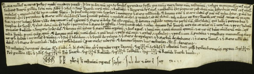 Tortellà Història de Tortellà. Els primers pobladors. L'evidència més reculada és al jaciment de la Bauma del Serrat del Pont, data del Neolític, un refugi situat a 2 minuts del Pont del Llierca, que va ser utilitzat regularment, primer per caçadors nòmades fa cap a 8.000 anys i, més tard, per grups humans del Neolític. L'estudi de les restes faunístiques dels nivells mesolítics del jaciment indiquen una important activitat de cacera com a base de la dieta humana del grup que ocupava aquest abric. Les espècies millor documentades són els mamífers de mida mitjana (cèrvol, porc senglar, cabra salvatge i cabirol), seguides dels petits carnívors (guilla, teixó i marta), aus i tortugues terrestres. ![]() 27 d'abril de 1133. Testament d'Arsendis. Deixa una part dels seus bens mobles a Santa Maria de Tortellà. Biblioteca de Catalunya. - (Ampliar)