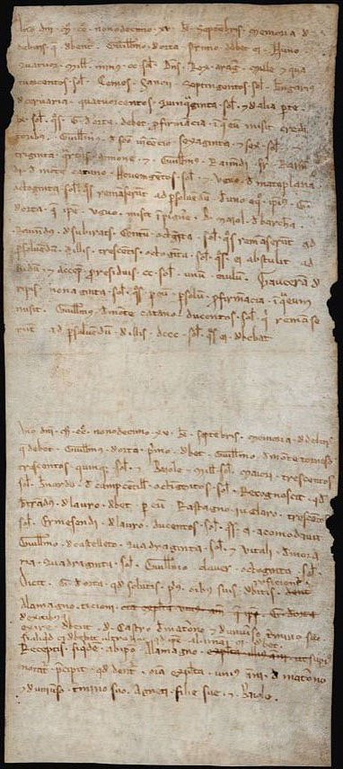 L'església de Sant Joan de Mataplana es troba isolada, davant de les restes del castell del qual n'era la capella. És un edifici d'una sola nau trapezoïdal coberta amb volta de canó i absis semicircular ultrapassat amb volta de quart d'esfera, orientat a llevant. La porta oberta a la façana de ponent és amb arc de mig punt i a damunt hi ha un campanaret d'espadanya. Els murs són de carreus vistos a l'exterior, i l'interior ha estat repicat però resten visibles petits elements de decoració mural pintats al fresc. ![]() 3 d'abril de 1319. Sibil·la, comtessa del Pallars i senyora de Cervelló, amb el seu espós, Huguet de Mataplana, confirmen a Guerau de Clariana totes les permutes que va realitzar. Biblioteca de Catalunya - (Ampliar) Sant Pere de Mogrony. Juntament amb el seu castell, era propietat del Monestir de Sant Joan de les Abadesses. D'estil romànic, la seva supervivència pot ser deguda a la devoció i ús dels habitants dels masos propers. La capella va ser restaurada el 1969, i conserva pintures a l'absis. Procedents d'aquesta església es conserven dues taules pintades, una al Museu Episcopal de Vic i l'altra al Museu d'Art de Catalunya, a Barcelona. Va ser restaurada el 1970, i en l'actualitat depèn de Mogrony i té culte un cop l'any. ![]() Estances interiors del castell de Mataplana durant el segle XIII. Cartell del mirador del Castell - (Ampliar)