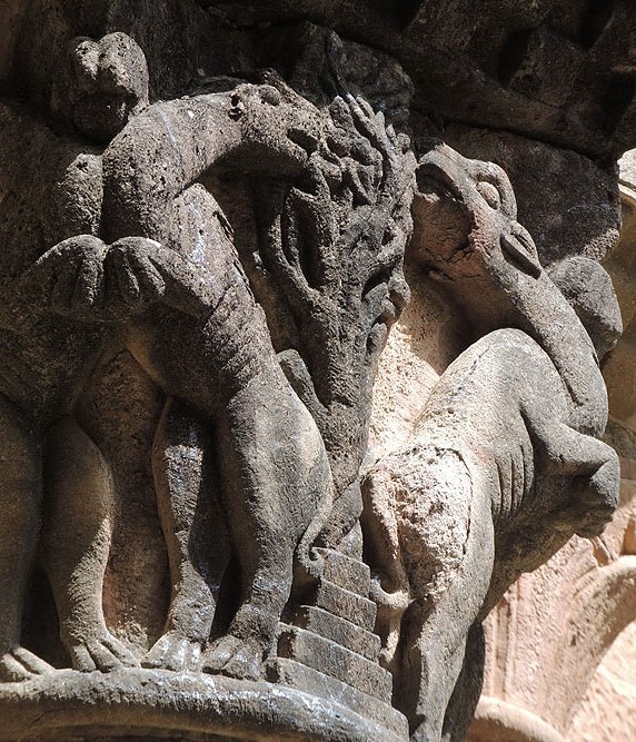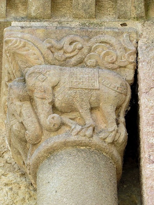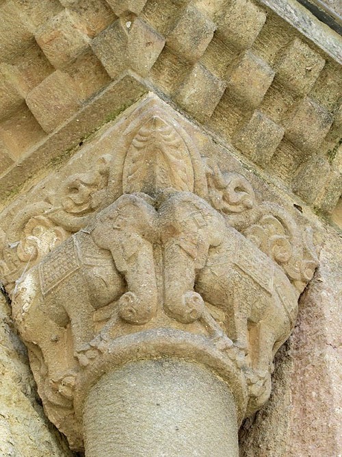Elefants enfrontats. Capitell de la capçalera del monestir - (Ampliar)