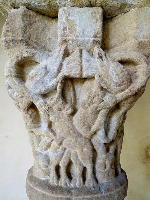 Capitell. Restes del claustre romànic del monestir - (Ampliar)