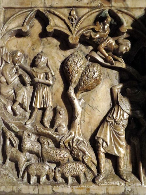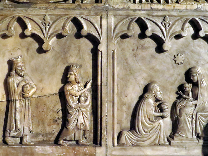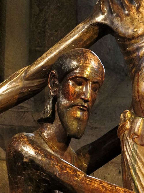 Conjunt escultòric romànic del Davallament, tallat el 1250. Detall.