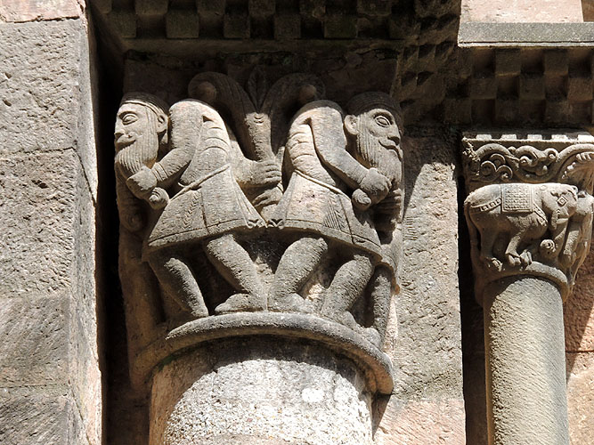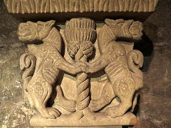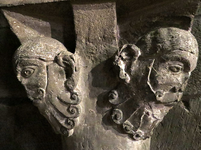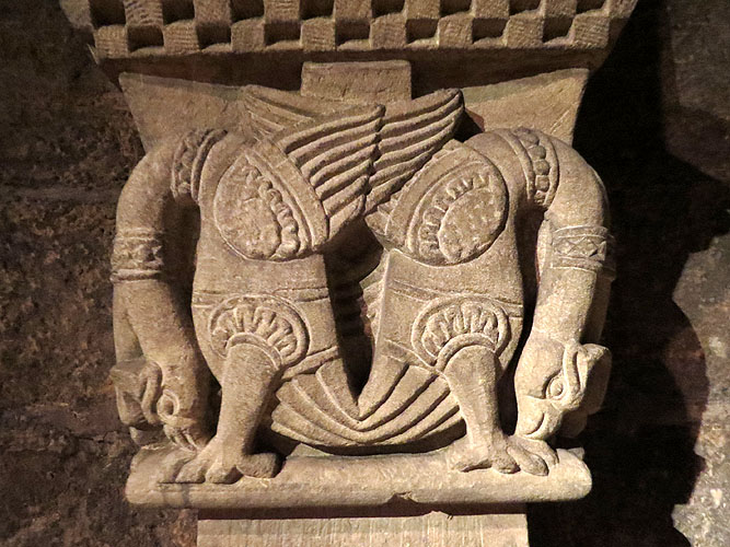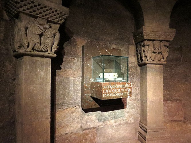 Absis de Sant Mateu. Capitell. Rèplica de corona, homenatge a Guifré el Pilós, fundador del monestir.