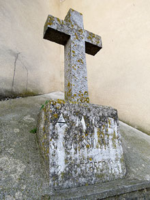 Làpida de Galceran d'Olmeda a l’església parroquial de Santa Maria de Sales, la Cellera de Ter. Publicat a "Santa Maria de Sales...", op. cit. - (Ampliar)