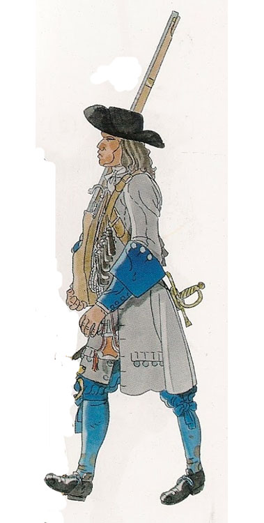 Soldat de la Companyia de Vilafranca durant la Guerra dels Nou Anys (1689-1694). Dibuix de Francesc Riart - (Ampliar)
