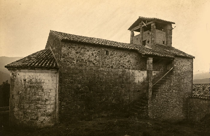 La nau va ser allargada per la banda de ponent, es va prescindir de l'entrada original i n'obrir una altra. La volta de maçoneria apuntada es construí després d'aixecar els dos arcs torals, recolzats en pilastres. Durant els segles XVII i XVIII es va construir la casa d'hostatgeria per als pelegrins. L'església havia tingut un timpà notable que es descobrí cap als anys 1960 i es vengué a un antiquari. Hi havia representat el pantocràtor rodejat pels símbols dels quatre evangelistes. ![]() Plaça porxada del Firal dels Bous. 1915. Valentí Fargnoli i Annetta. CRDI - Ajuntament de Girona. - (Ampliar) ![]() Evolució demogràfica de Santa Pau. Les dades dels anys 1497-1553 s'han estimat en base als focs: 1497, 53 focs; 1515, 93 focs; 1553, 102 focs. Les dades del període 1717-1981, corresponen a població de fet; a partir de 1990, població de dret. Dades recents extretes d'Idescat. - (Ampliar) Bibliografia