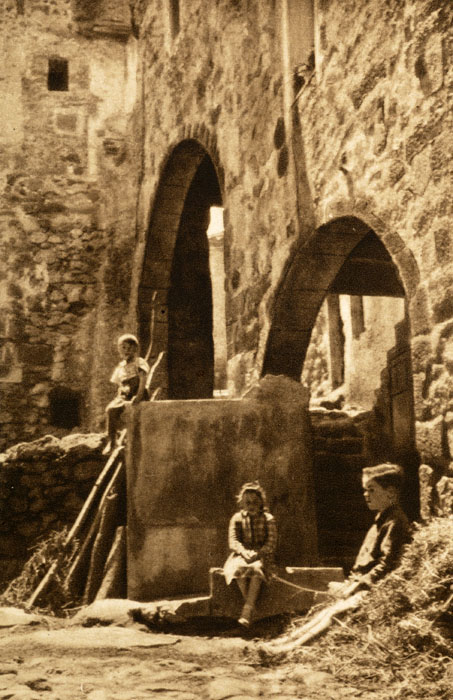 El 28 de febrer de 1297, Ponç III de Santa Pau intervingué, al costat del rei Jaume II, en l'empresa siciliana, i va obtenir el privilegi d'un mercat setmanal per a la baronia de Santa Pau. El 1312, Huguet II de Santa Pau va retre homenatge al rei Jaume II pels castells de Finestres, Santa Pau i Sant Aniol. ![]() Vista de Santa Pau. 1910. Autor desconegut. CRDI - Ajuntament de Girona. - (Ampliar)